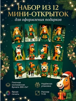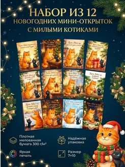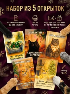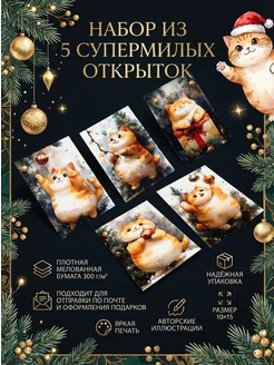 "Новогодние котики со снеговиками" набор из 5 открыток