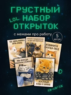 Набор открыток 5 шт Котики в офисе для посткроссинга