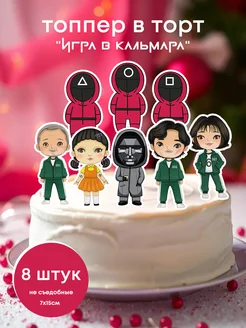 Топпер для торта Игра в кальмара. Украшение для кексов