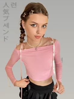 Кроп топ y2k с ленточками и бантиками с длинными рукавом