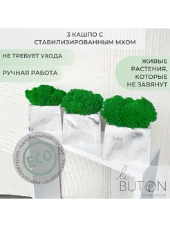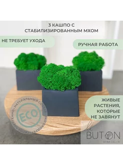 Мох стабилизированный в кашпо,цветы для декора 3шт