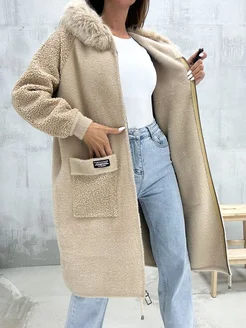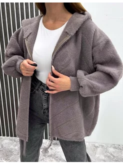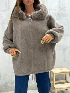 Куртка плюшевая демисезонная кардиган длинный альпака