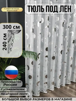 Тюль в гостиную спальню 300х240 на шторной ленте готовый