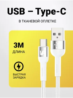 Кабель type-c 3 метра быстрая зарядка
