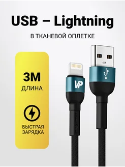 Кабель для iphone 3 метра lightning быстрая зарядка