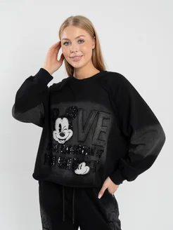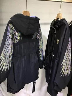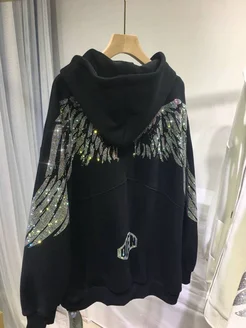 Худи женский украшенные крыльями из страз в корейском стиле