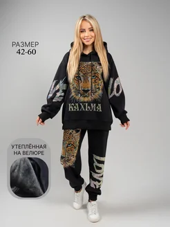 Спортивный костюм утеплённый на велюре со стразами