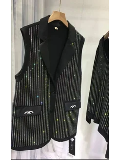 Жилет безрукавка украшенная стразами хамелеон