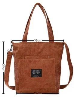Сумка шоппер вельветовая через плечо на молнии