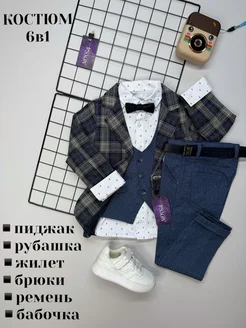 Костюм нарядный на выпускной с пиджаком и жилетом