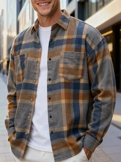 Рубашка теплая в клетку с длинным рукавом оверсайз