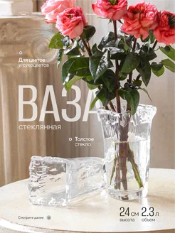 Ваза для цветов, сухоцветов стеклянная большая 24 см