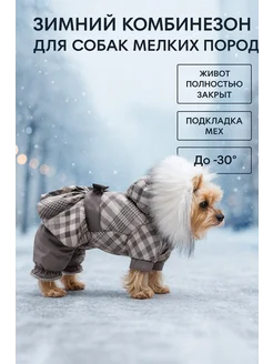 Комбинезон зимний для собак мелких пород с капюшоном