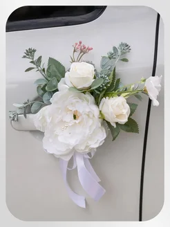 Белые Украшения на зеркало и ручки свадебного автомобиля