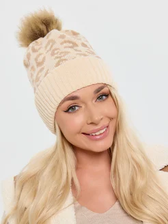 Зимняя шапка вязаная,бини с помпоном