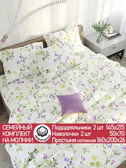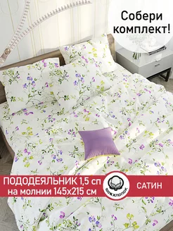 Постельное белье 1.5 спальн на молнии простыня 150х215 сатин