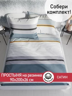 Простынь на резинке 90х200 х26 см сатин Сказка Аляска