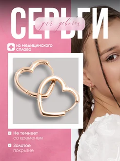 Серьги детские сердечки бижутерия медицинский сплав