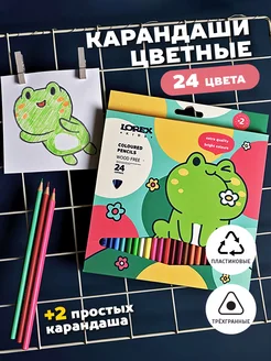 Карандаши цветные 24 цвета + 2 простых детские для рисования
