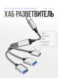 USB-C хаб 3-в-1 с Power Delivery 60 Вт и двумя портами USB-A