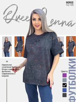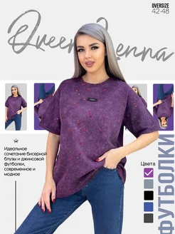 Футболка оверсайз варенка рваная со стразами