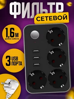 Удлинитель с USB зарядкой и розетками сетевой фильтр