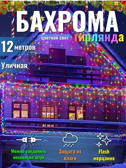 Гирлянда уличная бахрома 12 метров на дом садовая