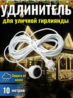 Удлинитель для уличной гирлянды, белый провод, 10 метров