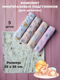 Многоразовые трикотажные подгузники для девочек 60х60 см