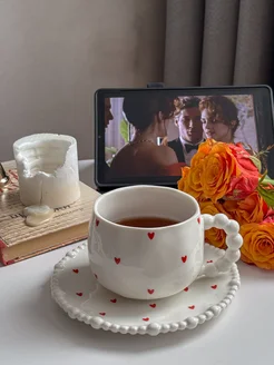 Набор кружек для чая и кофе с блюдцем чашка керамическая