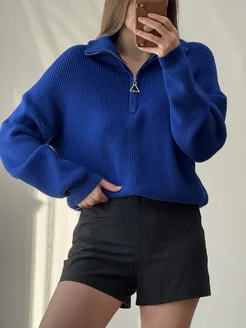 Свитер оверсайз вязаный с горлом на молнии
