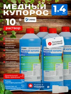Медный купорос для растений 10% раствор 4 л (1л 4 шт)