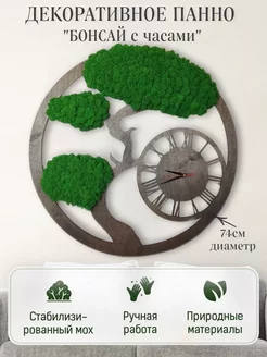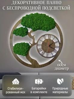Декоративный мох на стену Бонсай с часами и подсветкой 60 см