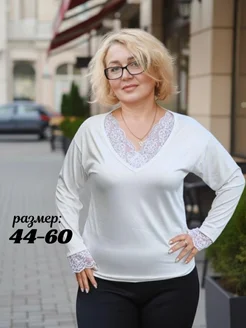 Лонгслив белый кружевной plus size