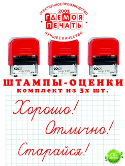 Набор оценочных штампов Отлично, Хорошо, Старайся!