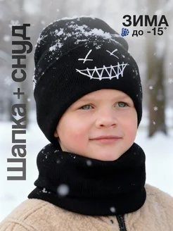 Шапка бини зимняя и снуд детский