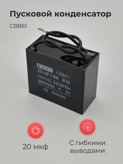 Конденсатор CBB61 20мкф 450v с гибкими выводами