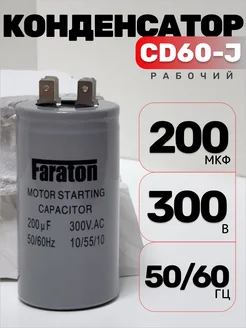 Конденсатор рабочий CD60-J 200мкф 300В с клеммами