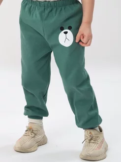 Брюки детские джоггеры зелёные с мишкой из хлопка