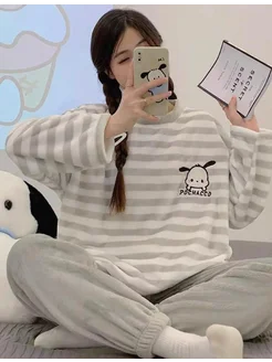 Пижама женская со штанами теплая домашняя плюшевая