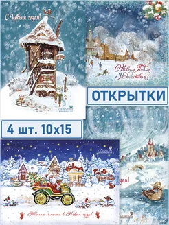 Открытки новогодние, с Новым Годом, 4 шт, 10х15