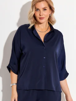 Рубашка офисная атласная шелковая больших размеров оверсайз