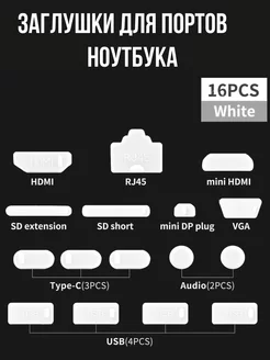 Силиконовые заглушки для ноутбука, 16 шт, белые