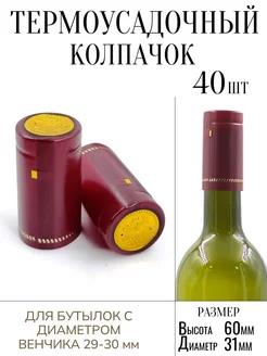 Термоусадочный колпачок бордовый 40 штук для бутылок