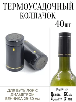 Термоусадочный колпачок черный 40 штук для бутылок