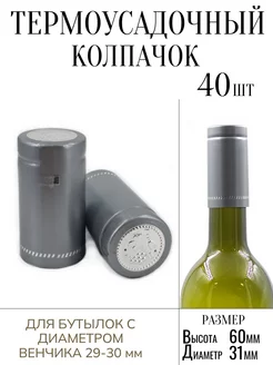 Термоусадочный колпачок серебро 40 штук для бутылок