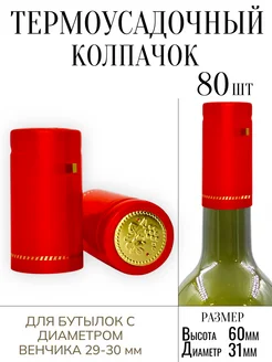 Термоусадочный колпачок красный 80 штук для бутылок
