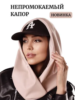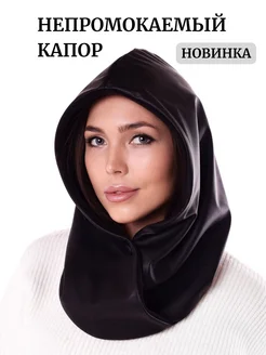 Капор женский демисезонный экокожа съемный капюшон на флисе