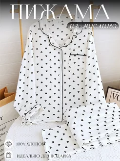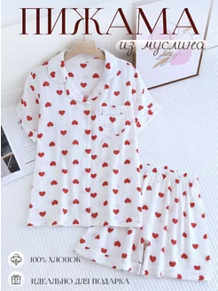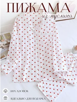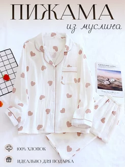 Пижама муслиновая со штанами сердечки женская рубашка белая