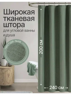 Широкая штора для угловой ванны тканевая 200х240 см зеленая